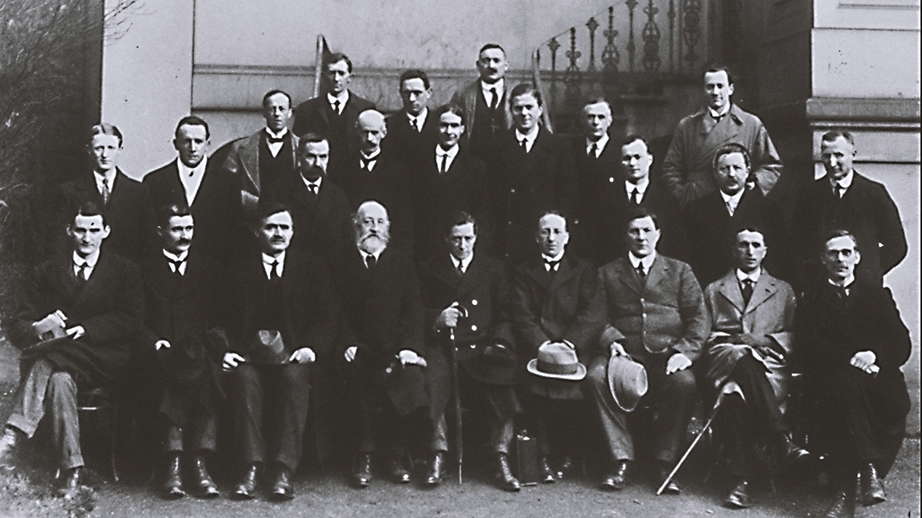 The Dáil Éireann is the name of the Irish parliament, which today is based in Leinster House, Dublin. The First Dáil was established in 1919 in Mansion House, Dublin, as an unicameral legislature (the Seanad was only officially established by the 1937 Constitution.) During the War of Independence, the Dáil Éireann issued several key declarations and programmes on behalf of the Irish nation, most notably the Irish Declaration of Independence, Democratic Programme and Message to the Free Nations of the World, all in 1919.