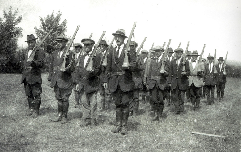 The Irish Volunteers, or Óglaigh na hÉireann was founded as an Irish nationalist volunteer militia in 1913 by Eoin MacNeill. Formed as a response to the establishment of the loyalist Ulster Volunteers and to preserve Home Rule, the Irish Volunteers commanded at its peak almost 200,000 members, including members of the Gaelic League, Irish Republican Brotherhood, Sinn Féin and the Irish Parliamentary Party. Upon the breaking out of WW1 in 1914, many of the Volunteers would join the British Army to join in the British war effort, some more radical members however refused to take any part in the war effort. Despite official policy being that the Volunteers would only engage in physical force if the British attempted to disband and disarm them, members of the Irish Volunteers circumvented MacNeill’s authority and plotted the Easter Rising in conjunction with the Irish Republican Brotherhood and Irish Citizen Army. MacNeill’s countermanding order however greatly limited the number of Volunteers that would fight on Easter Week to around 1,250 volunteers. Following the Rising, the Volunteers would undergo reorganisation and would form the nucleus of the Irish Republican Army (IRA).
